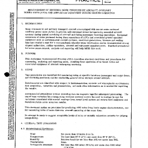 Test procedures are described for measuring noise at specific locations (passenger and cargo doors, and servicing positions) and for conducting general noise surveys around aircraft.
