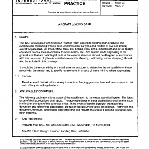 This SAE Aerospace Recommended Practice (ARP) applies to landing gear structures and mechanisms (excluding wheels, tires, and brakes) for all types and models of civil and military aircraft applications. All axles, wheel forks, axle beams, links, arms, mechanical and air-oil energy absorbers braces, lock assemblies, trunnion beams, etc., that sustain loads originating at the ground, and that are not integral parts of the airframe structure should be designed in accordance with this document. Hydraulic actuators (retraction, steering, positioning, and/or damping) should also be included in this coverage.