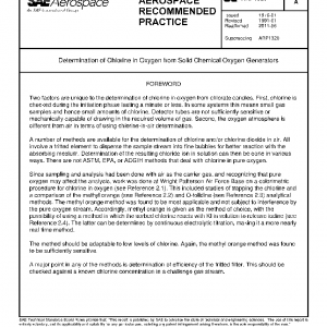 This ARP covers a procedure to be used in the determination of 0.05 to 0.3 ppm of chlorine in oxygen from any type of generator used for emergency or other life-support systems. The methyl orange method described can be considered as a referee technique. Instrumental analysis is also given in Section 8.