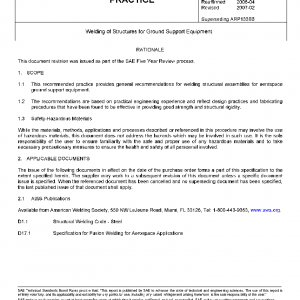 This recommended practice provides general recommendations for welding structural assemblies for aerospace ground support equipment.