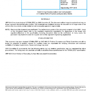 This document provides a recommended practice for determining decarburization and carburization in heat treated carbon and low-alloy steel parts other than case hardened parts. It is not applicable to raw materials.