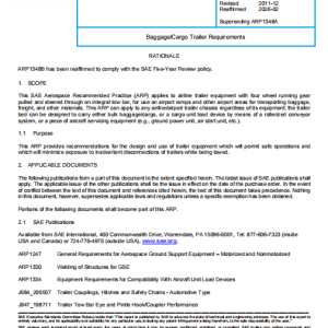 This SAE Aerospace Recommended Practice (ARP) applies to airline trailer equipment with four wheel running gear pulled and steered through an integral tow bar, for use on airport ramps and other airport areas for transporting baggage, freight, and other materials. This ARP can apply to any airline/airport trailer chassis regardless of its equipment; the trailer bed can be designed to carry either bulk baggage/cargo, or a cargo unit load device by means of a rollerized conveyor system, or apiece of aircraft servicing equipment (e.g., ground power unit, air start unit, etc.).