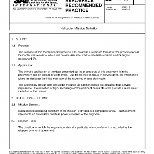 The purpose of this recommended practice is to establish a standard format for the presentation of helicopter mission data, which will provide data required to establish airframe and/or engine component life.