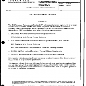 The purpose of this document is to establish minimum operational requirements that will ensure that perishable cargoes in insulated standard airborne containers can be kept in prime condition during the ground handling and air transportation cycle within a maximum time span of 48 h.
