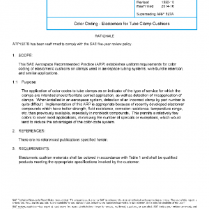 This SAE Aerospace Recommended Practice (ARP) establishes uniform requirements for color coding of elastomeric cushions on clamps used in aerospace tubing systems, wire bundle retention, and similar applications.