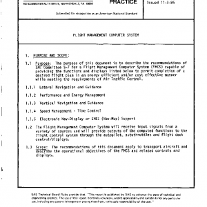 The purpose of this document is to describe the recommendations of SAE Committee S-7 for a Flight Management Computer System (FMCS) capable of providing the functions and displays listed below to permit completion of a desired flight plan in an energy efficient and/or cost effective manner while meeting the requirements of Air Traffic Control. The recommendations of this document apply to transport aircraft and describe the operational objectives of the FMCS and related controls and displays.