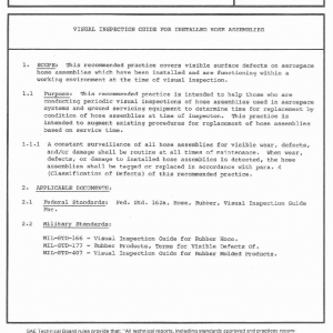 This recommended practice covers visible surface defects on aerospace hose assemblies which have been installed and are functioning within a working environment at the time of visual inspection.