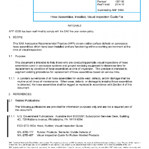 This SAE Aerospace Recommended Practice (ARP) covers visible surface defects on aerospace hose assemblies which have been installed and are functioning within a working environment at the time of visual inspection.