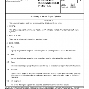 This SAE Aerospace Recommended Practice (ARP) defines a method of numbering aircraft engine cylinders.