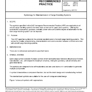 The symbols specified in this SAE Aerospace Recommended Practice (ARP) are applicable to all aircraft cargo handling systems for lower deck as well as for upper deck systems. Utilizing the symbols the conveyance, guidance, restraint, power drive unit and the degree of automation for the total cargo handling system can be depicted.