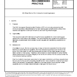 This SAE Aerospace Recommended Practice (ARP) is to provide a recommended minimum laboratory roll performance for main landing gear aircraft wheels without tires installed and applies to both split wheel hub and lock-ring wheel designs.