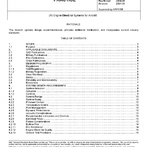 This SAE Aerospace Recommended Practice (ARP) discusses design philosophy, system and equipment requirements, installation environment and design considerations for military and commercial aircraft systems within the Air Transport Association (ATA) ATA 100 specification, Chapter 36, Pneumatic. This ATA system/chapter covers equipment used to deliver compressed air from a power source to connecting points for other systems such as air conditioning, pressurization, ice protection, cross-engine starting, air turbine motors, air driven hydraulic pumps, on board oxygen generating systems (OBOGS), on board inert gas generating systems (OBIGGS), and other pneumatic demands.