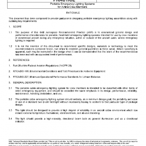The purpose of this SAE Aerospace Recommended Practice (ARP) is to recommend general design and performance characteristics for portable, hand-held emergency lighting systems intended for use by crew members of commercial aircraft during any emergency situation, within or outside of the aircraft cabin, where emergency lighting is required.