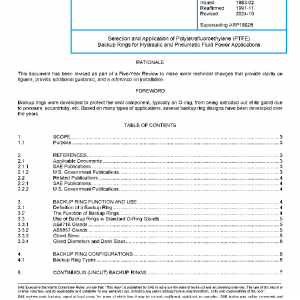 This SAE Aerospace Recommended Practice (ARP) provides an overview of the various types of polytetrafluoroethylene (PTFE) backup rings for hydraulic and pneumatic fluid power applications, including their advantages and disadvantages.