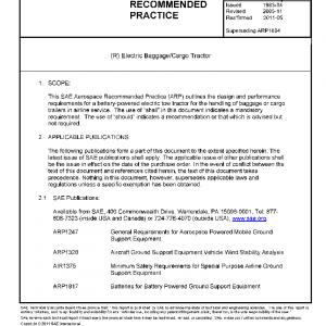 This SAE Aerospace Recommended Practice (ARP) outlines the design and performance requirements for a battery-powered electric tow tractor for the handling of baggage or cargo trailers in airline service. The use of “shall” in this document indicates a mandatory requirement. The use of “should” indicates a recommendation or that which is advised but not required.