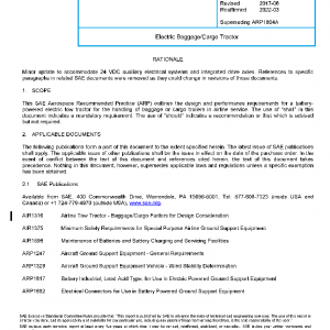 This SAE Aerospace Recommended Practice (ARP) outlines the design and performance requirements for a battery-powered electric tow tractor for the handling of baggage or cargo trailers in airline service. The use of “shall” in this document indicates a mandatory requirement. The use of “should” indicates a recommendation or that which is advised but not required.