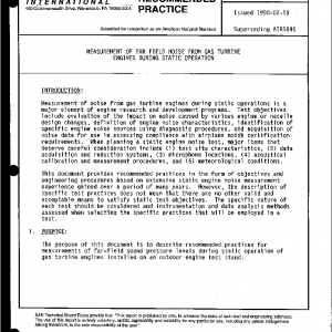 Recommendations presented in this document are intended primarily for the acquisition of far-field acoustical data. The test engine is to be appropriately configured and operated so that the acoustical signals generated are consistent with the specific objectives of the test. The principal output of the data reduction system is one-third octave band sound pressure levels. However, broader or narrower bandwidth analysis of the recorded data may also be accomplished when appropriate.