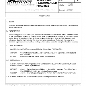 This SAE Aerospace Recommended Practice (ARP) outlines the basic general design considerations for aircraft towbars.