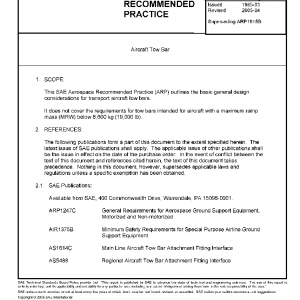 This SAE Aerospace Recommended Practice (ARP) outlines the basic general design considerations for transport aircraft tow bars.