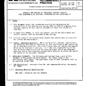 This document covers the recommended practice for determining the acceptability of the dendrite arm spacing (DAS) of D357-T6 aluminum alloy castings required to have tensile strength not lower than 50,000 psi (345 MPa).