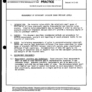 Satisfactory measurements of noise in personnel-occupied rotorcraft cabins may require test techniques different from those prescribed for other types of aircraft (ARP1323) because rotorcraft operate under significantly different flight conditions. Recommendations of this ARP apply to the recording of acoustical data on magnetic tape and the subsequent processing and analysis of the recorded data.
