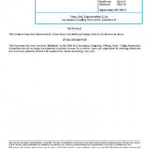 Titles, SAE Subcommittee G-3A Aerospace Coupling Documents, Selection of(STABILIZED May 2022)