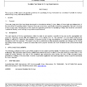 There are many tests that have been developed to characterize rubber O-rings. Many of these tests are independent of the size of the O-ring being tested. However, there are some tests, specifically, stress/strain properties, that are a function of the O-ring’s size. The purpose of this report is to provide guidelines for specifying O-rings that would be considered “suitable for testing” when writing O-ring material specifications.