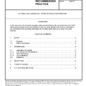 This SAE Aerospace Recommended Practice (ARP) provides the industry agreed methods to keep the center of gravity (C.G.) location of loaded air cargo Unit Load Devices (ULDs) within the maximum horizontal and vertical limits allowed by their airworthiness approval.