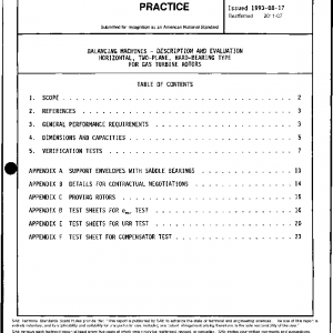 BALANCING MACHINES – DESCRIPTION AND EVALUATION HORIZONTAL, TWO-PLANE, HARD-BEARING TYPE FOR GAS TURBINE ROTORS