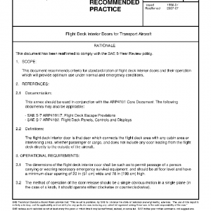 This document recommends criteria for standardization of flight deck interior doors and their operation which will provide optimum use under normal and emergency conditions.