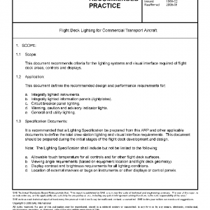 This document recommends criteria for the lighting systems and visual interface required of flight deck areas, controls and displays.