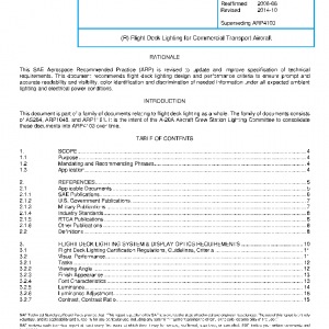 This document recommends design and performance criteria for aircraft lighting systems used to illuminate flight deck controls, luminous visual displays used for transfer of information, and flight deck background and instrument surfaces that form the flight deck visual environment. This document is for commercial transport aircraft except for applications requiring night vision compatibility.