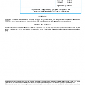 Dimensional Compatibility of Child Restraint Systems and Passenger Seat Systems in Civil Transport Airplanes(Cancelled Aug 2024)