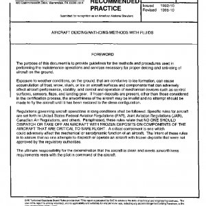 This document establishes the minimum criteria for ground based aircraft deicing/anti-icing with fluids to ensure the safe operation of aircraft during icing conditions. This document does not specify requirements for particular airplane models.