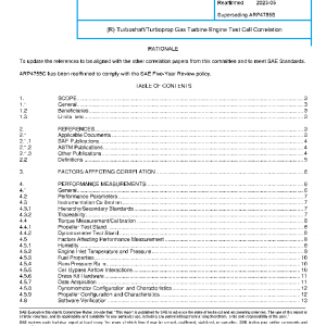This paper describes a recommended practice and procedure for the correlation of test cells that are used for the performance testing of turboprop and turboshaft engines. This Aerospace Recommended Practice (ARP) shall apply to both dynamometer and propeller based testing. Test cell correlation is performed to determine the effect of any given test cell enclosure and equipment on the performance of an engine relative to the baseline performance of that engine. Although no original equipment manufacturer (OEM) documents are actually referenced, the experience and knowledge of several OEMs contributed to the development of this document. Each engine manufacturer has their own practices relating to correlation and they will be used by those OEMS for the purpose of establishing certified test facilities.