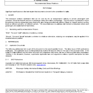 This document contains information that can be used by the air transportation industry to provide passengers with consistent “Brace for Impact” positions in passenger safety information and briefings. This information is intended to reduce the potential confusion passengers may experience upon being presented with different “Brace for Impact” positions as they travel on different aircraft or on different carriers. This document does not address child restraint or situations where adult passengers are seated behind fixed tables.