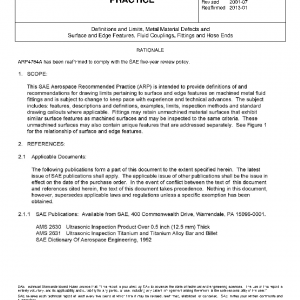 Definitions and Limits, Metal Material Defects and Surface and Edge Features, Fluid Couplings, Fittings and Hose Ends