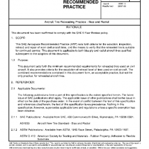 This SAE Aerospace Recommended Practice (ARP) sets forth criteria for the selection, inspection, retread and repair of worn civil aircraft tires, and the means to verify that the retreaded tire is suitable for continued service. This document is applicable to both bias ply and radial aircraft tires qualified subsequent to the adoption of this document.