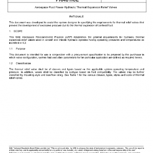This SAE Aerospace Recommended Practice (ARP) establishes the general requirements for hydraulic thermal expansion relief valves used in aircraft and missile hydraulic systems having operating pressures and temperatures as identified in 1.2.