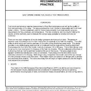 The intent of this SAE Aerospace Recommended Practice (ARP) is to define and recommend to the Aerospace Industry standardized test procedures for establishing fuel nozzle operating performance including types of tests, controlled and measured parameters, and test configurations.