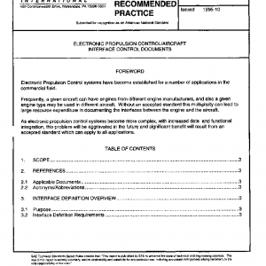 This SAE Aerospace Recommended Practice (ARP) provides guidelines for the format and content of documents defining the interface between electronic propulsion control systems and aircraft systems.