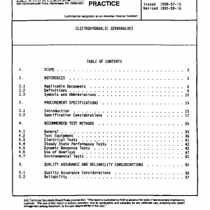 The specifications contained herein should be adequate to describe electrohydraulic servovalves. Additional specifications may be necessary to define special requirements for specific control systems. Also, specialized test procedures may be necessary to measure servovalve performance in these unusual specification areas. These considerations are beyond the scope of this ARP.