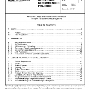 This SAE Aerospace Recommended Practice (ARP) establishes the factors which should be considered in the design and installation of a hydraulic system fitted to a commercial transport rotorcraft.