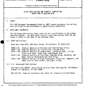 This SAE Aerospace Recommended Practice (ARP) covers procedures for welding wire verification and conformance to specification composition.