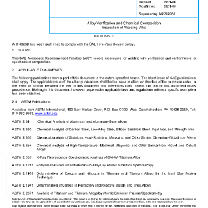 This SAE Aerospace Recommended Practice (ARP) covers procedures for welding wire verification and conformance to specification composition.