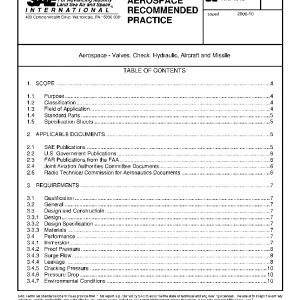 This SAE Aerospace Recommended Practice (ARP) establishes the general requirements for spring-loaded, normally closed check valves for use in Type I, Type II, or Type III aircraft and missile hydraulic systems having nominal operating pressure shown in Table 1.