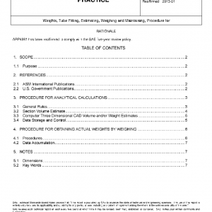 This SAE Aerospace Recommended Practice (ARP) establishes procedures for estimating the weight of parts, weighing actual parts at time of manufacture and maintaining and collecting the weight data.