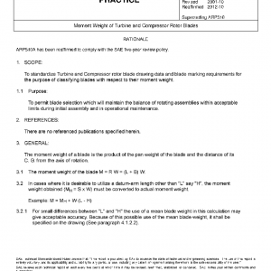 To standardize Turbine and Compressor rotor blade drawing data and blade marking requirements for the purpose of classifying blades with respect to their moment weight.