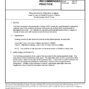 This SAE Aerospace Recommended Practice (ARP) covers the requirements for alternative coatings used in lieu of nickel-chromium plating and the surface finish requirements for aerospace hand tools. It is intended as a guide toward standard practice and is subject to change to keep pace with experience and technical advances.