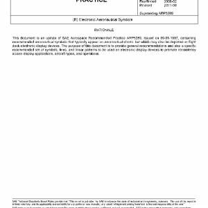 This Aerospace Recommended Practice (ARP) provides design philosophies, guidelines, requirements, and a set of recommended symbols, lines, and linear patterns for aeronautical information presented on electronic flight deck display devices.